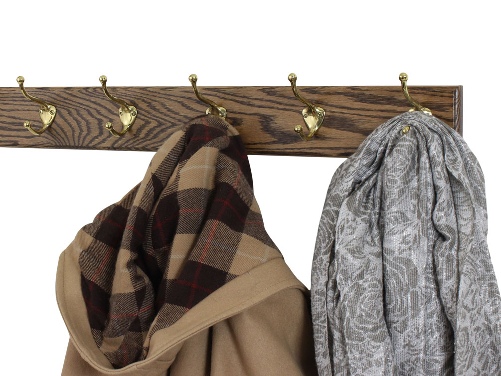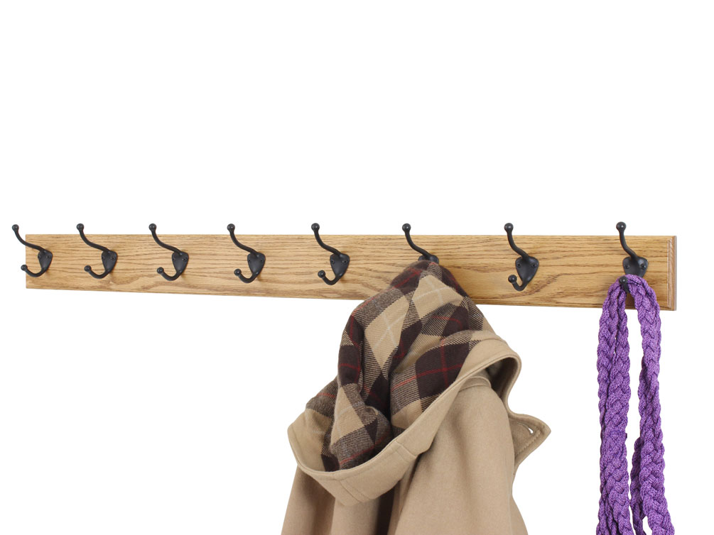 Solid Oak with Hat & Coat Style & Mission Hooks - Your Choice of Matt Black, Solid Brass, Bronze, Satin Nickel or Black Mission Style Hooks